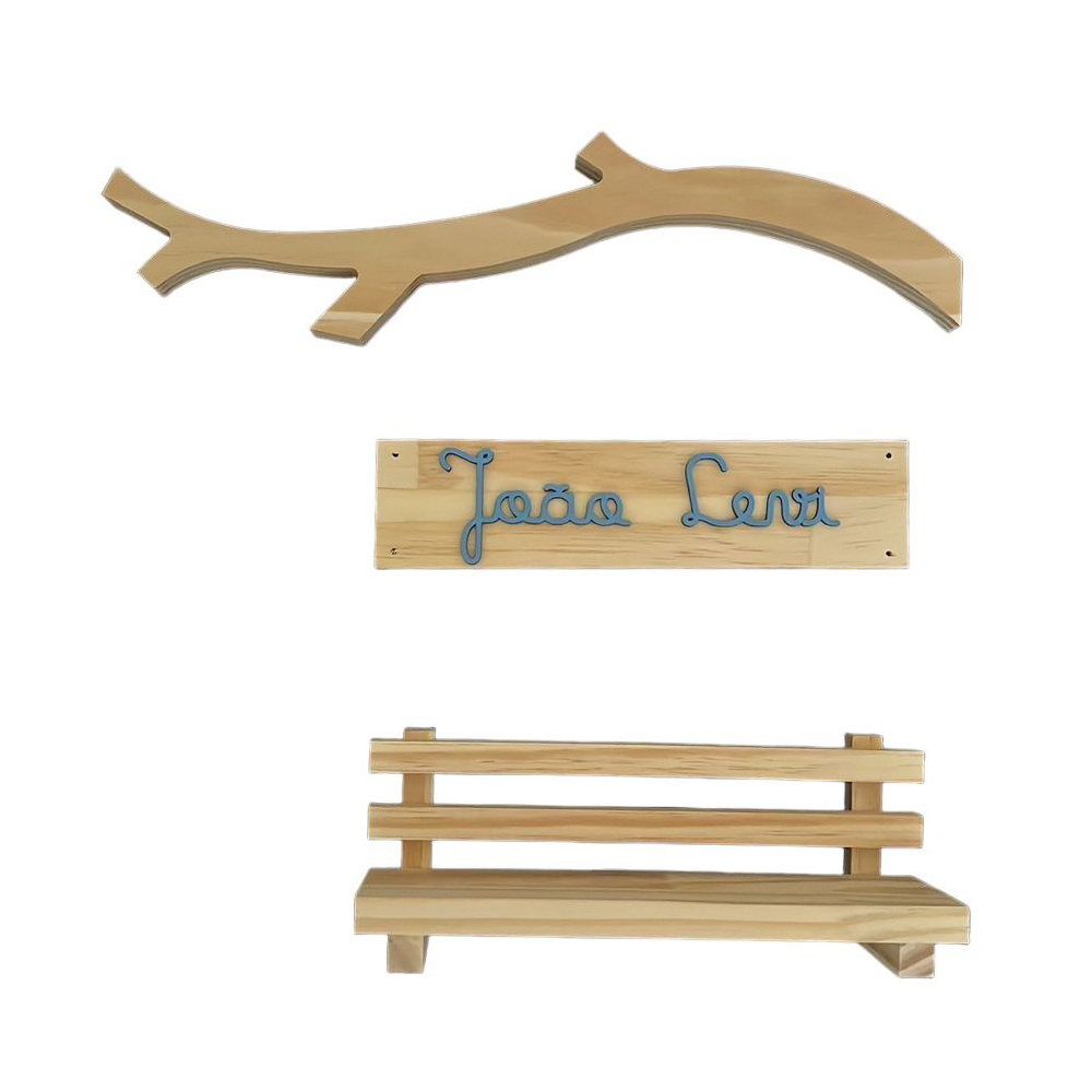 Plaquinha 25 x 6 cm em madeira pinus + nome em mdf personalizado, cores (sob consulta/vide tabela em anexo) em tamanho proporcional que vc pode solicitar sem custo adicional no final da compra através de mensagem fechada - Contém 4 furos